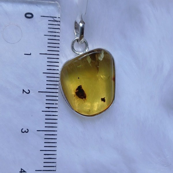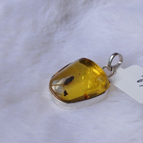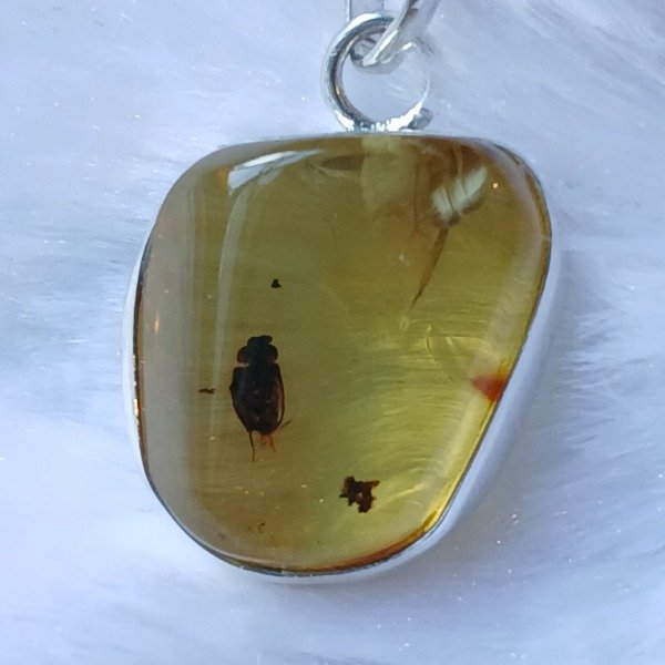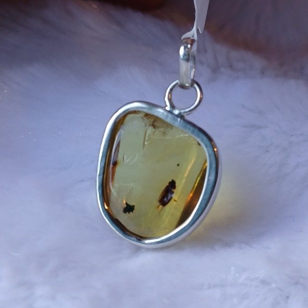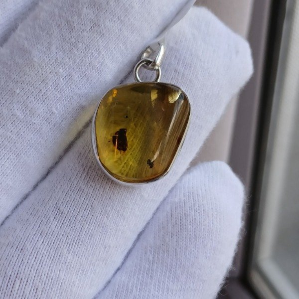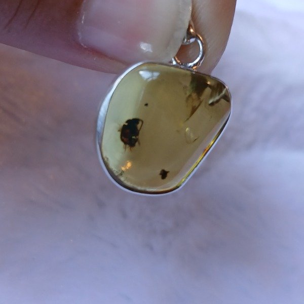 Este ámbar es una pieza novedosa con inclusiones internas que aportan carácter.