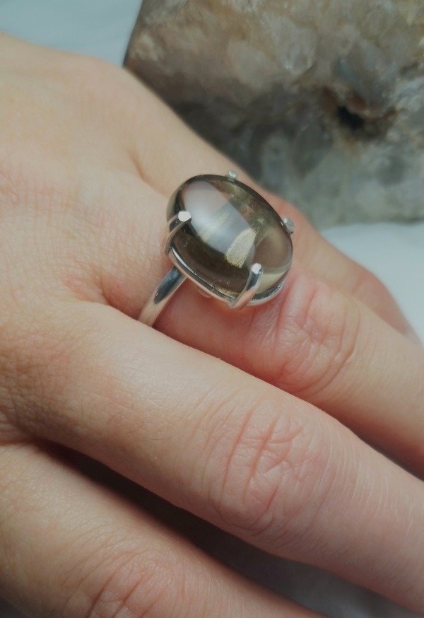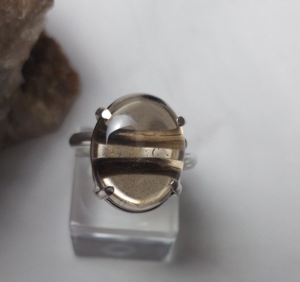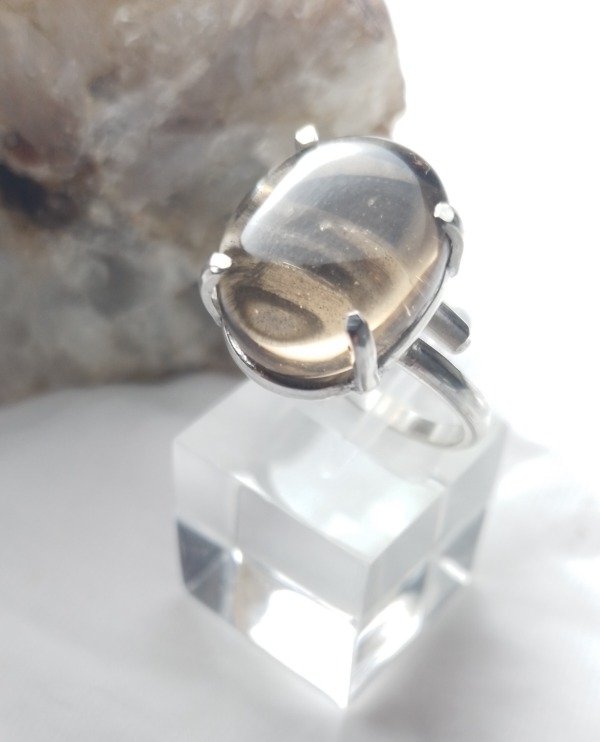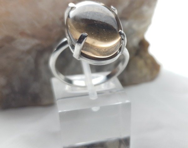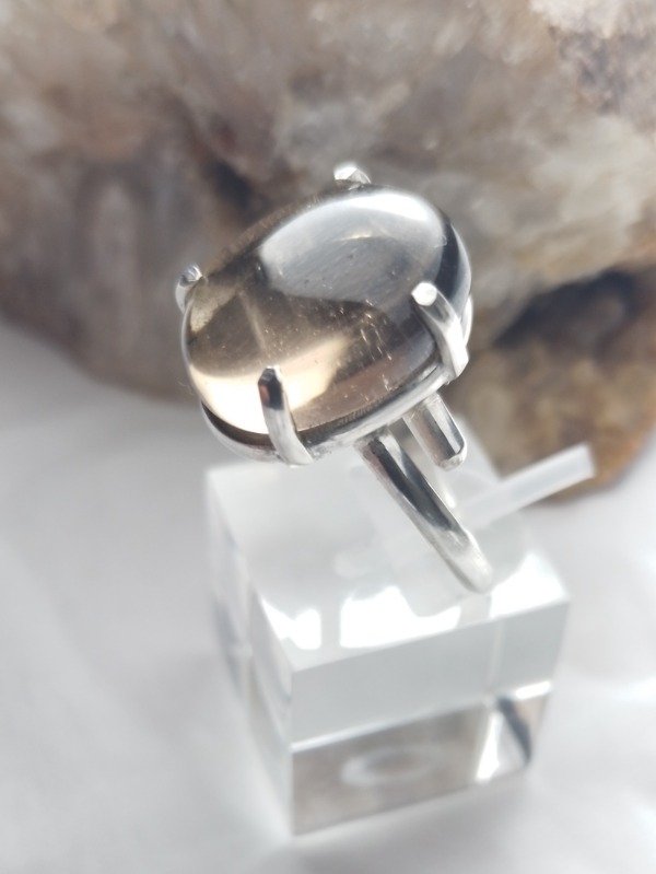 Anillo en plata 925 y piedra oval natural cuarzo ahumado.