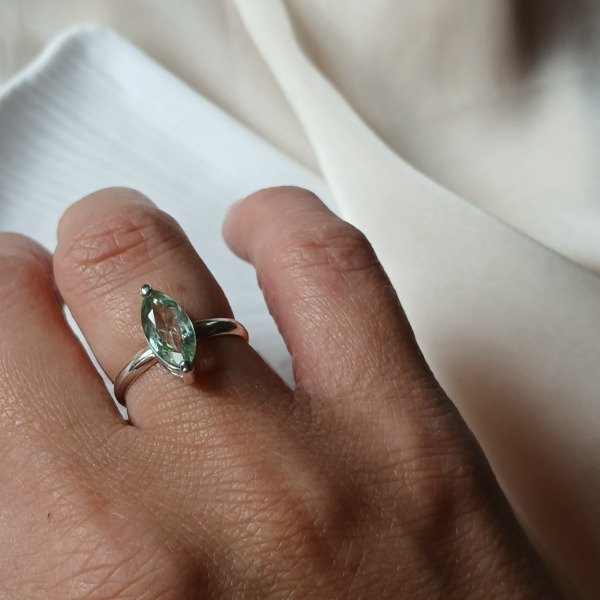 Anillo en plata 925 y piedra natural aguamarina brasileña.