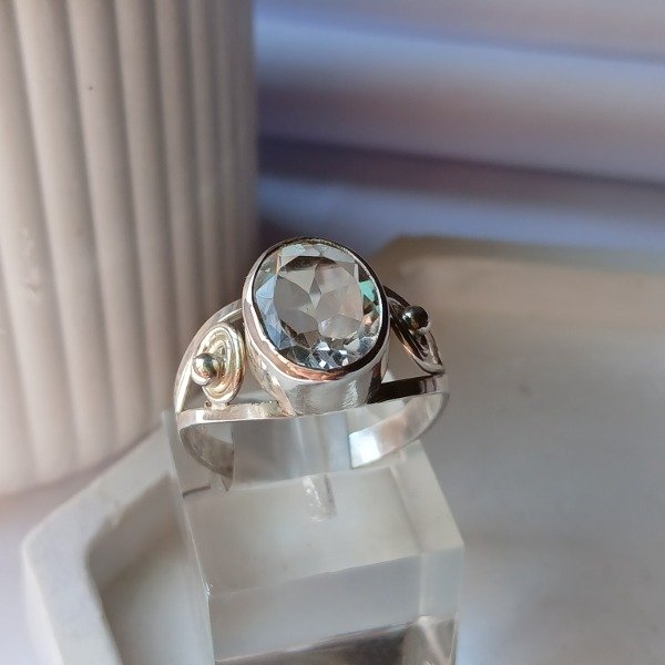 Anillo en plata 925 y piedra natural cuarzo cristal facetado.