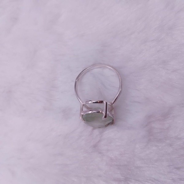 Anillo en plata 925 y piedra natural prehnita con epidoto facetada.