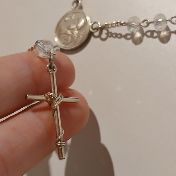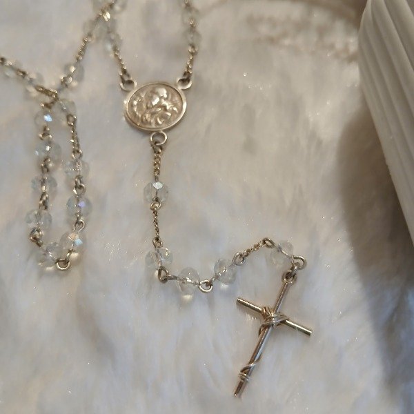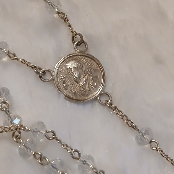 Rosario en plata con San Benito.