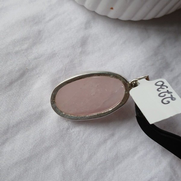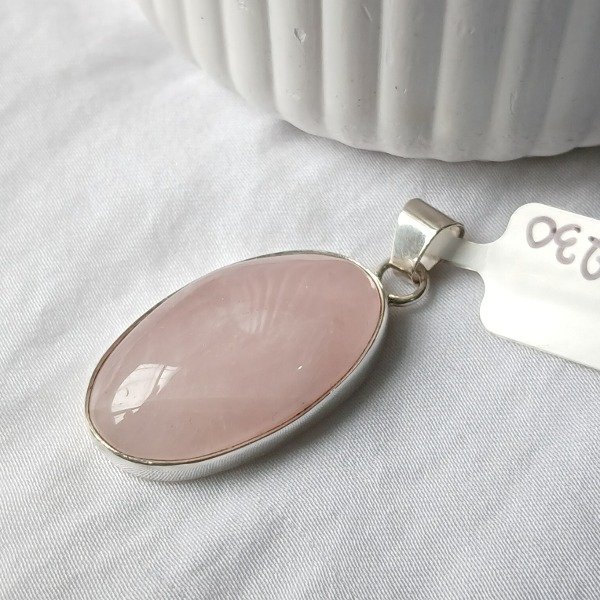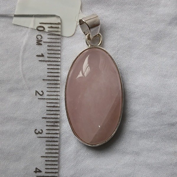 Dije en plata 925 y piedra natural cuarzo rosa de forma cabujon.