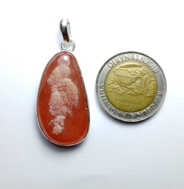 Dije en plata 925 y piedra natural rodocrosita calidad Ortiz.