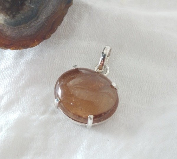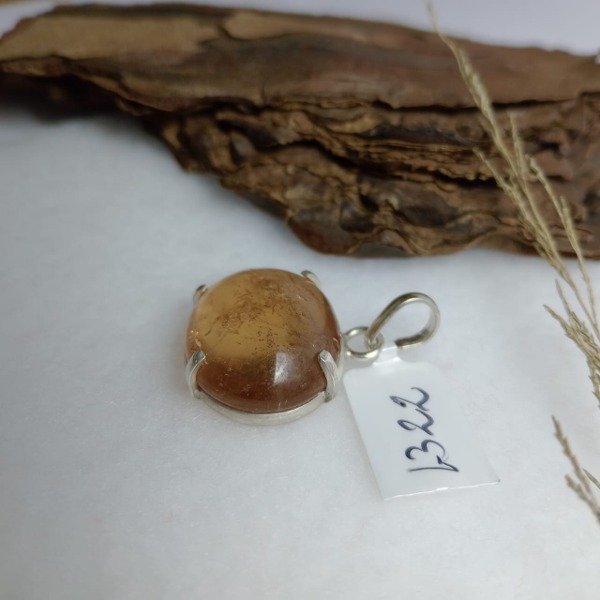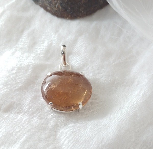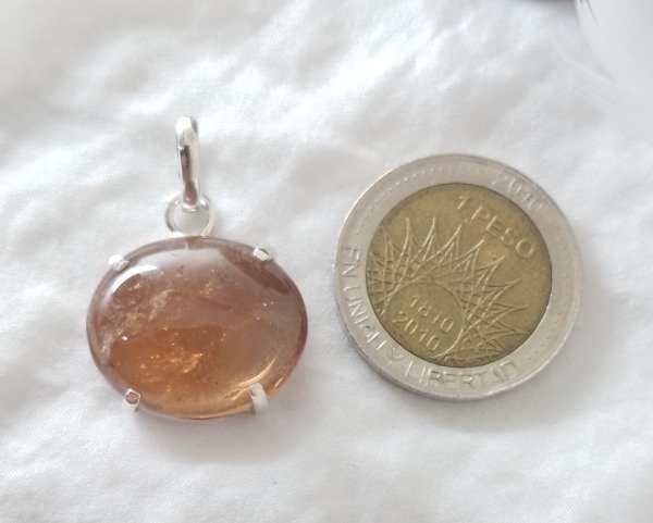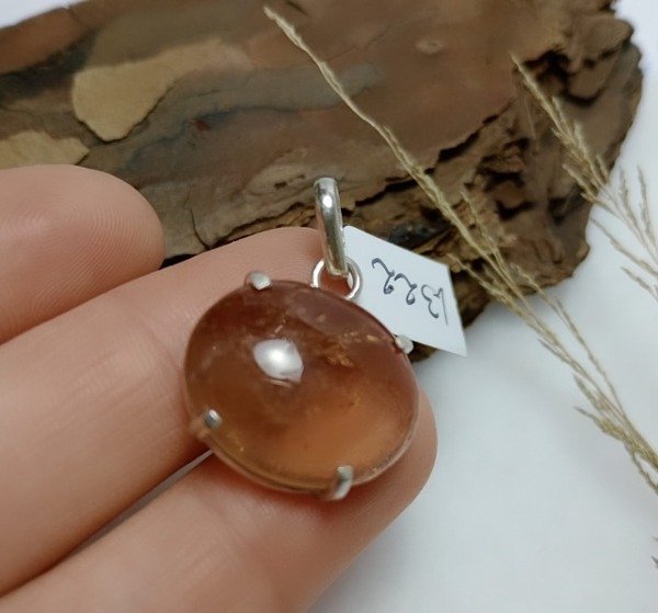 Dije en plata 925 y piedra natural topacio imperial de forma cabujon.