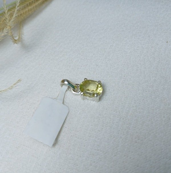 Dije en plata 925 y piedra natural cuarzo limón de forma facetada.