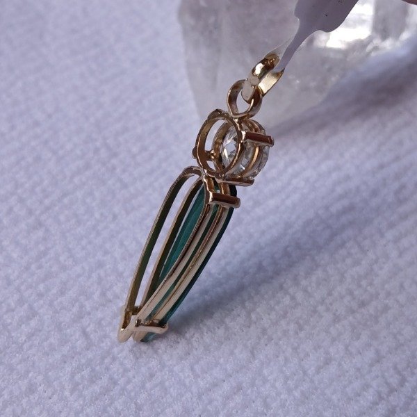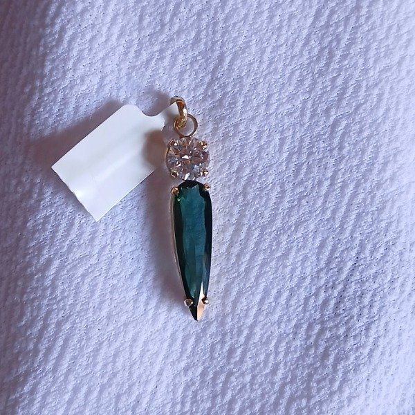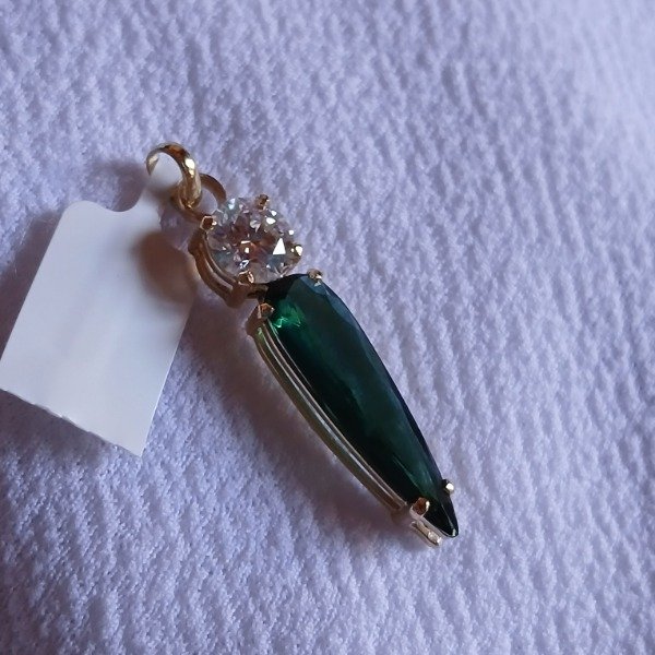 Esta pieza combina la luminosidad del oro 18k y la moissanita con la profundidad y el color de la turmalina, lo que la hace muy especial.