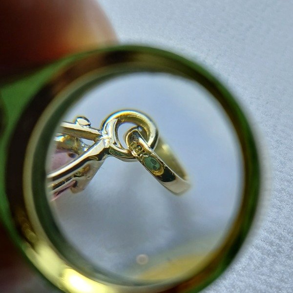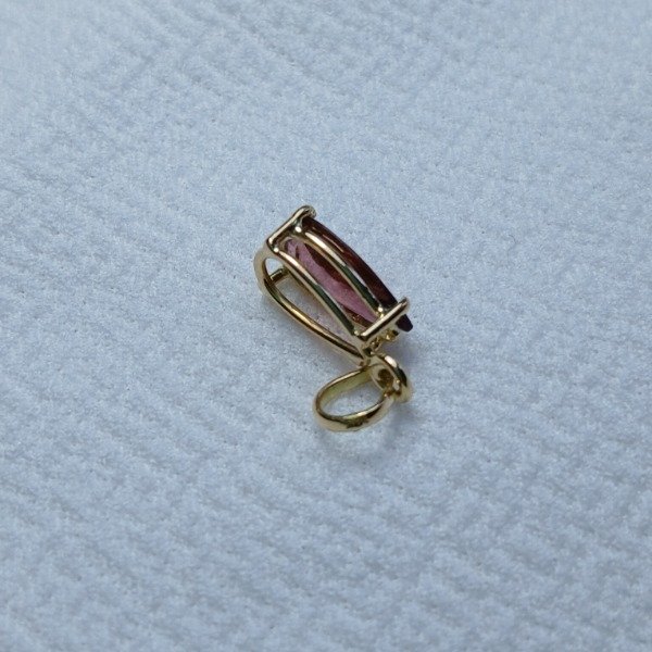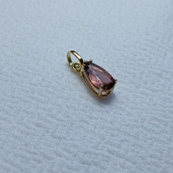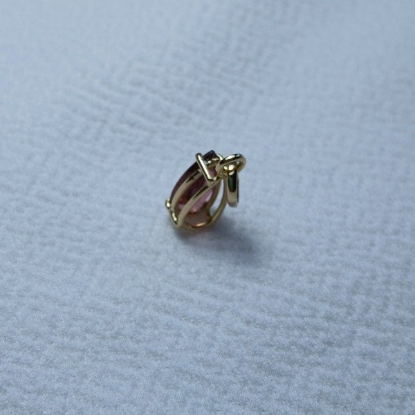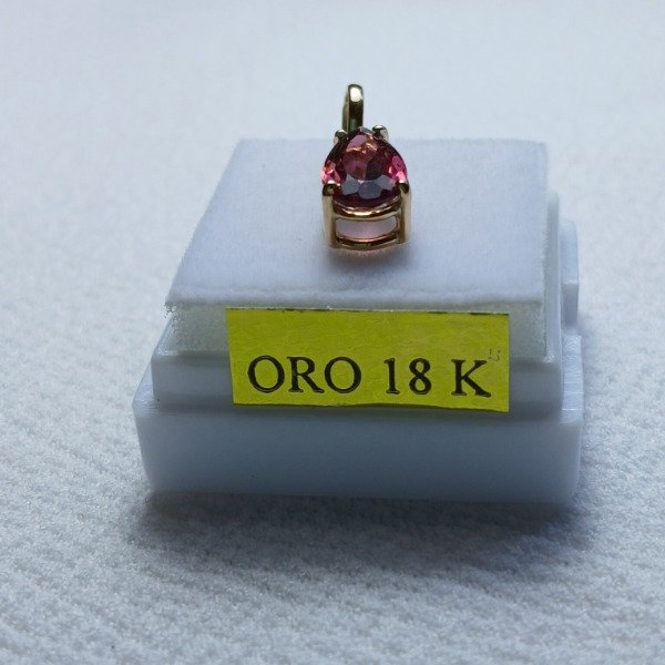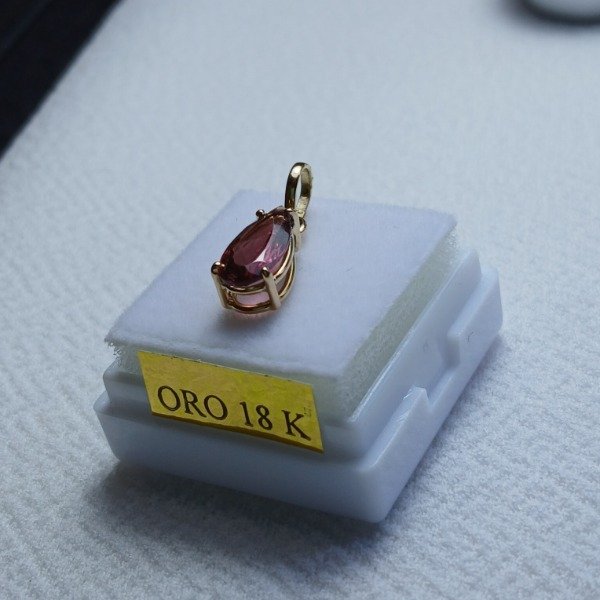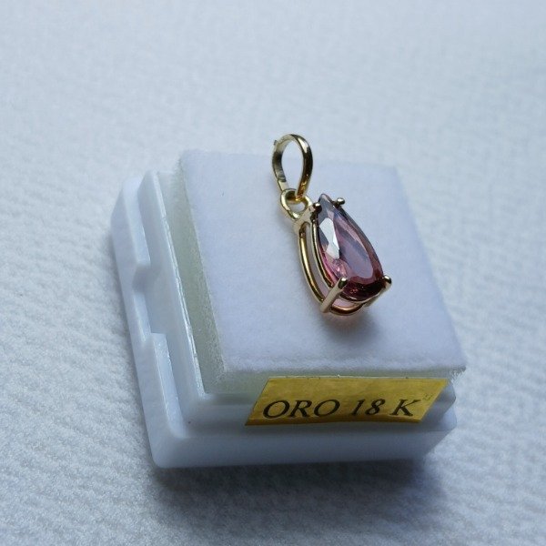 Esta turmalina rosada tiene forma de lágrima de 5x11 mm con facetado delicado y armonioso, esta elaborado en oro 18k, su tono rosado y su pureza la convierten en una de las variedades más buscadas y apreciadas dentro de las turmalinas.