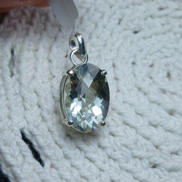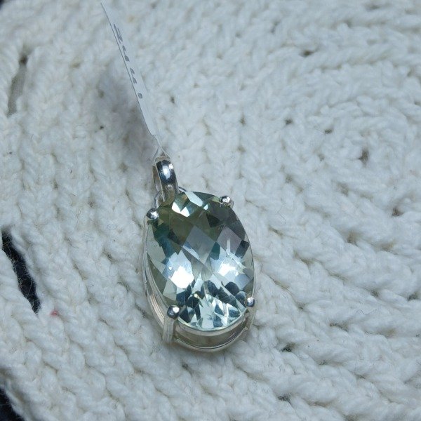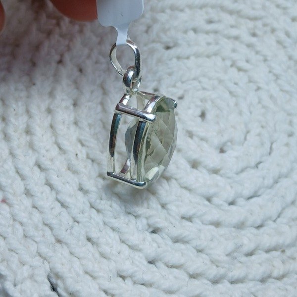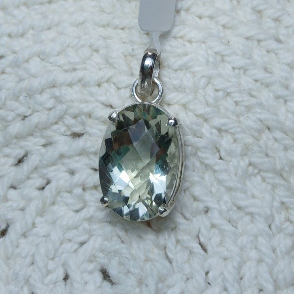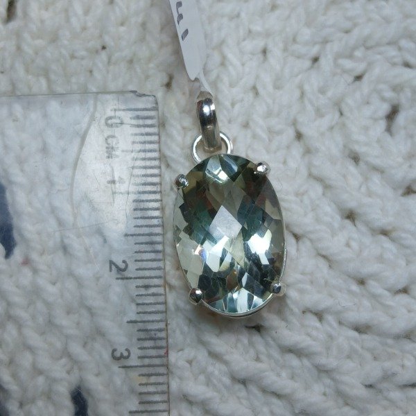 Dije cuarzo prasiolita oval facetado damero