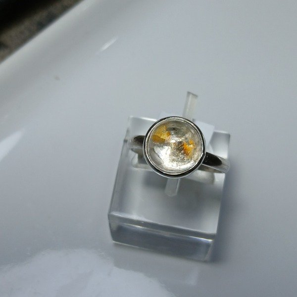 El cuarzo hematoide, con sus destellos dorados, es un cuarzo natural que contiene inclusiones de hematita (óxido de hierro), responsables de sus característicos tonos cálidos y vibrantes.