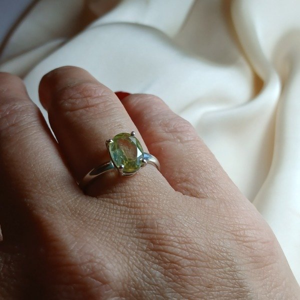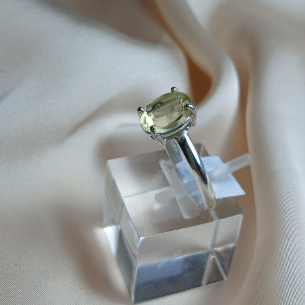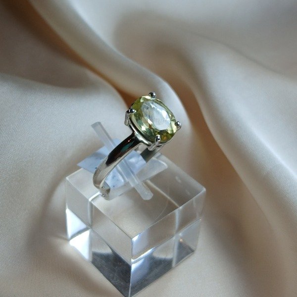Anillo en plata 925 y piedra natural cuarzo limón.