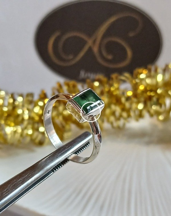 Esta esmeralda durante el proceso de engarzado sufrió un daño en la parte superior de la pieza, a pesar del mismo el color y la pieza son hermosos, por eso decidimos no descartarla, y ofrecerla como una oportunidad especial, con un valor por debajo de su precio real.