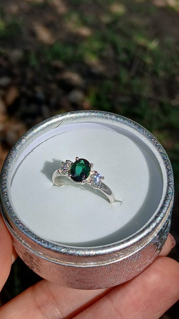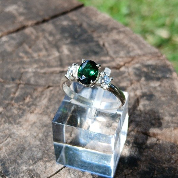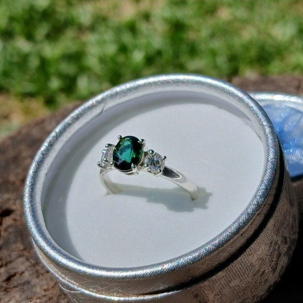 Anillo hecho en plata 925 y turmalina verde con moissanitas