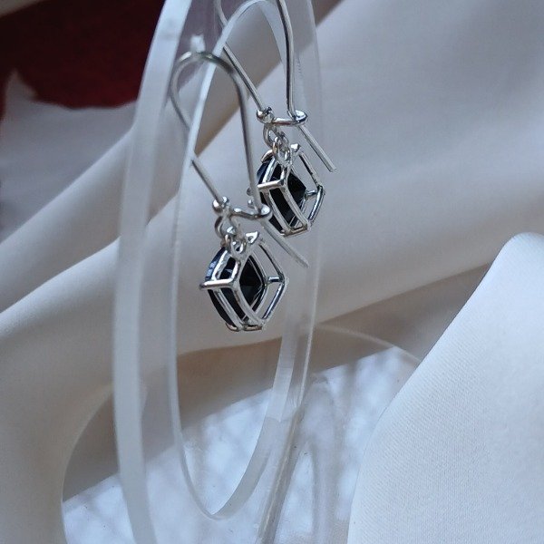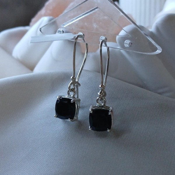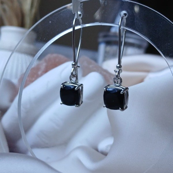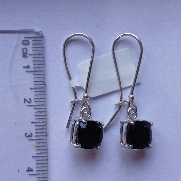 Aros colgantes elaborados en plata 925 con ónix natural facetados de aproximadamente 8x8 mm.