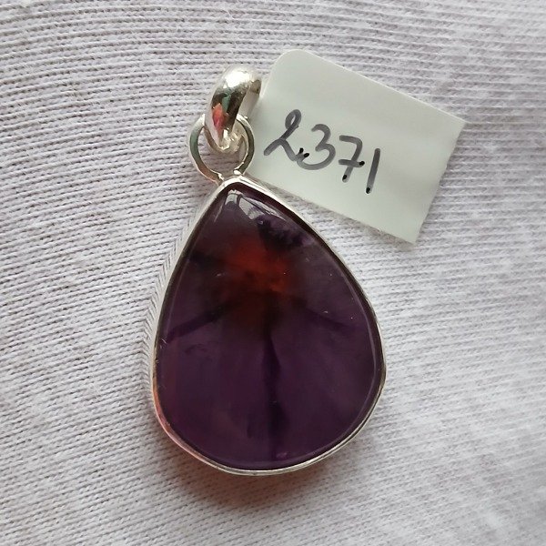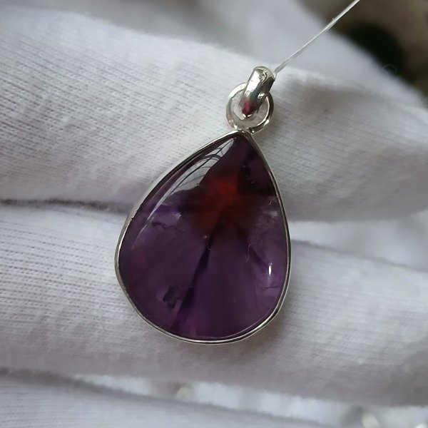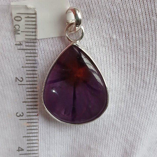 Un delicado dije con amatista gota de 18 x 22 mm aprox. Engarzada en plata 925, que resalta la belleza natural del cuarzo.