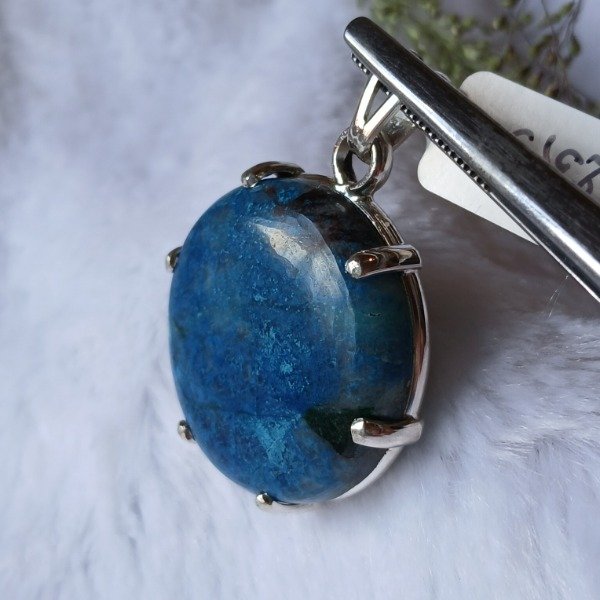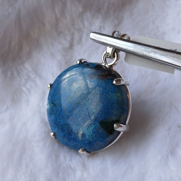 Una joya natural que combina la intensidad azul de la azurita con los suaves tonos celestes de la calcedonia, creando un contraste armónico y lleno de vida.