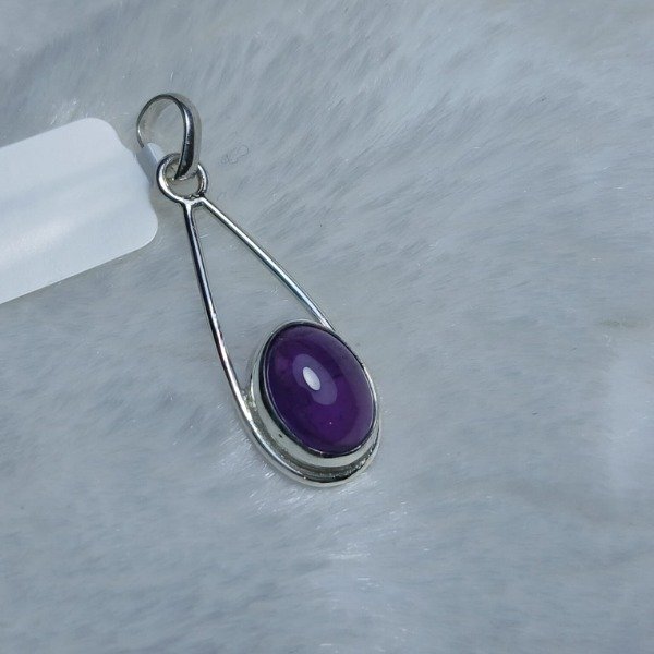 Delicado dije en forma de lágrima con amatista natural oval de 7 x 9 mm aprox.,